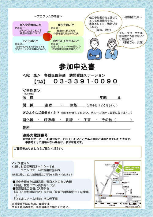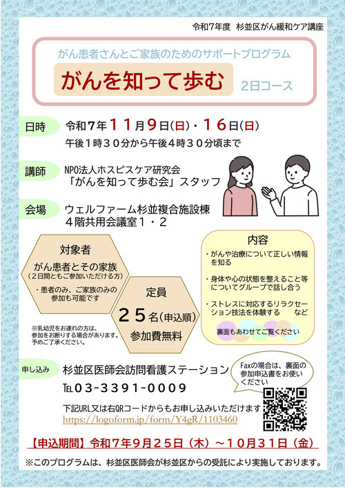 次回の「がんを知って歩む会」は、杉並区から依頼を受けて、